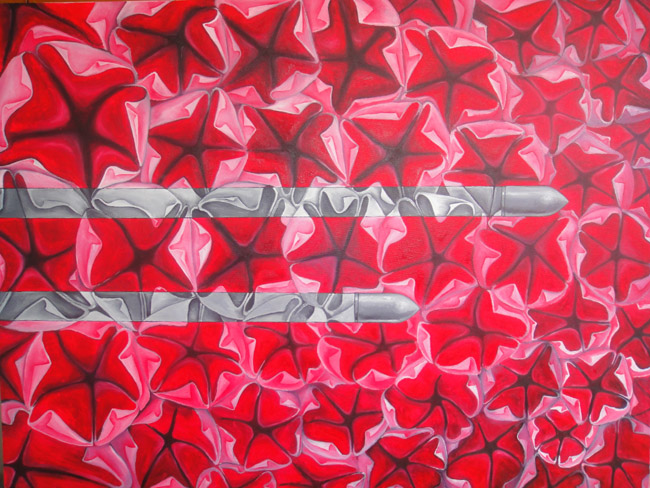 "Long distance relationship" - from the series "Destiny bullets" Dimensions: 90x110 cm, Oil on Canvas Private collection, Santa Barbara, California, USA